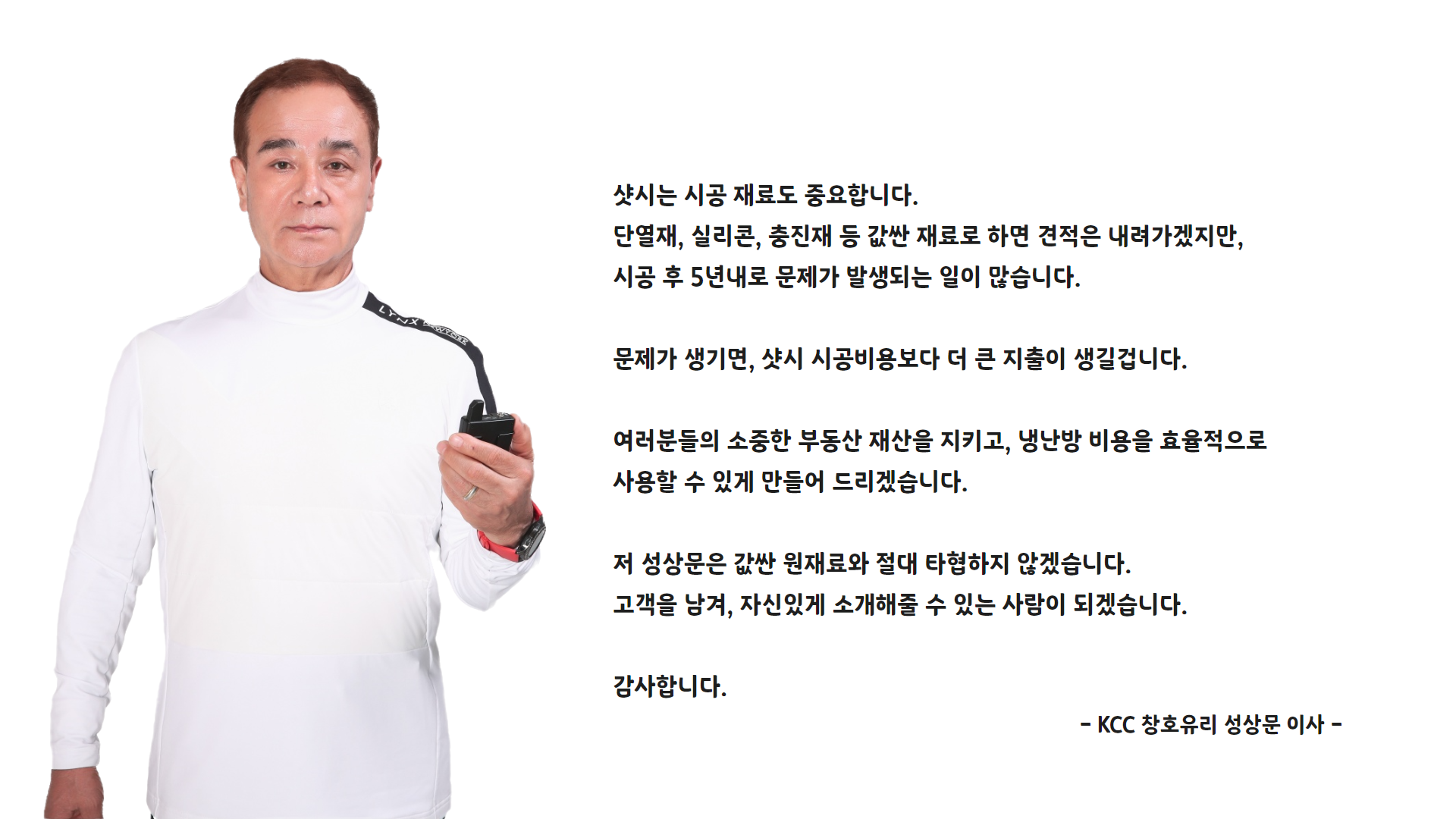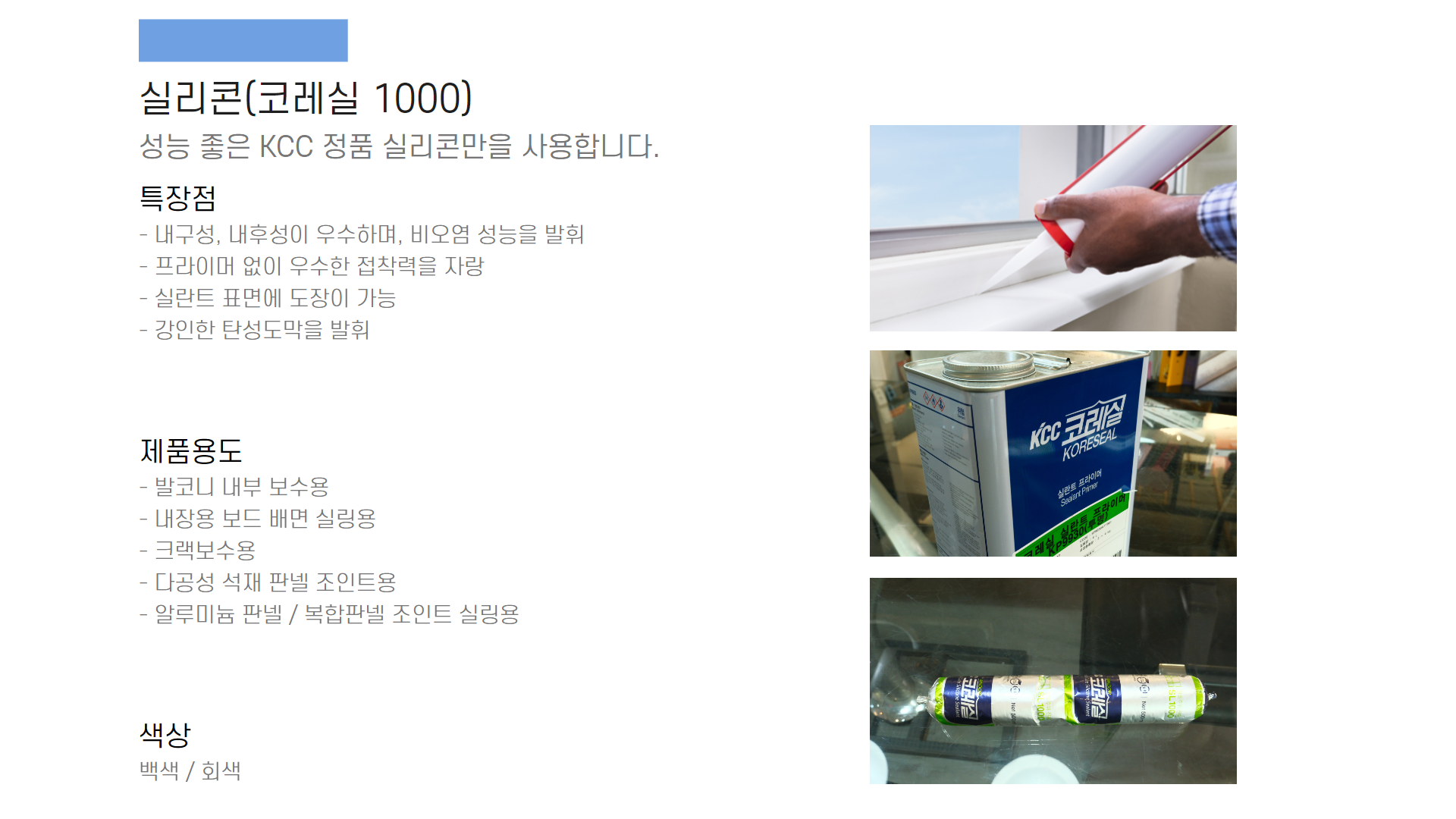 KCC 정품 재료만을 사용하고, 당일 시공